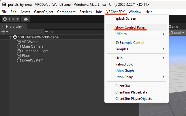 If the “VRCSdkControlPanel” does not appear, select “Show Control Panel” from the “VRChat SDK” menu to open it.