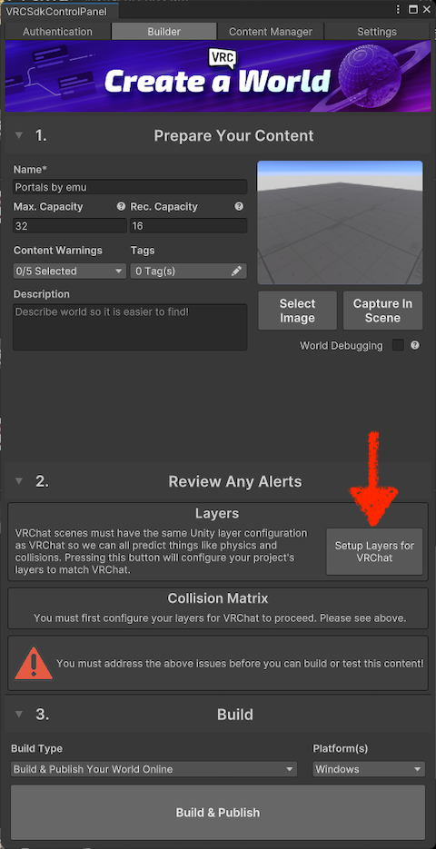 Click the button labeled “Setup Layers for VRChat.”