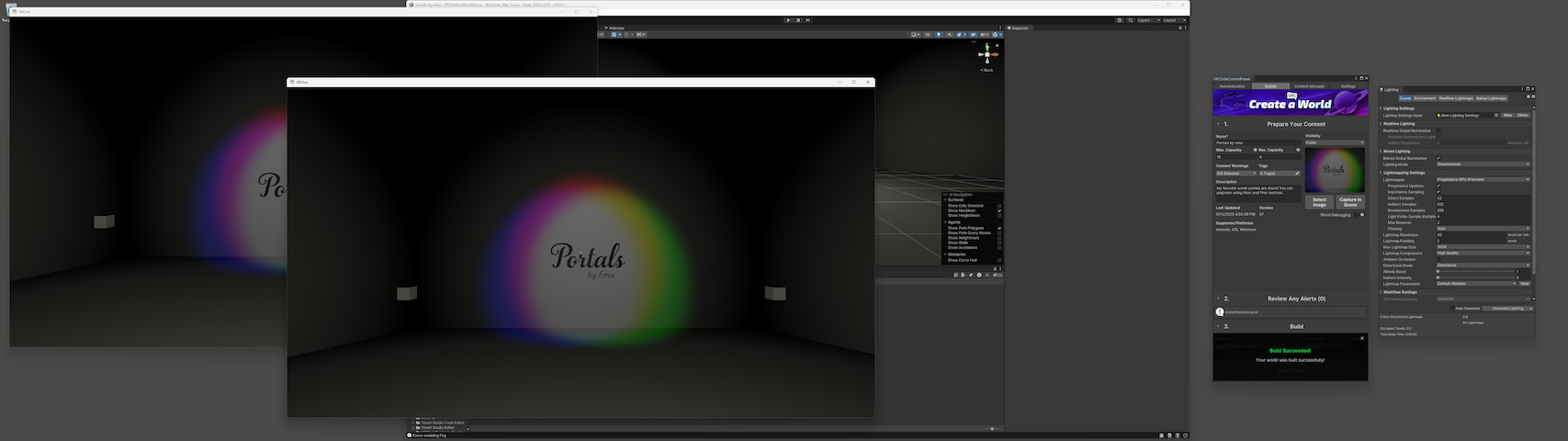 The button label will then change to “Build & Test.” Click it! Unity will build, and VRChat will launch in desktop mode, automatically placing you in the world you’re working on.